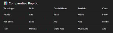 Se você sofre constantemente com drift, investir em Hall Effect ou TMR pode evitar dores de cabeça no futuro.